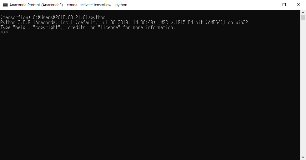 여기서 주의할 점은 Tensorflow의 경우 python 3.5, 3.6 을 지원합니다.