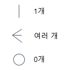 보통 ERD 툴을 쓰면 약간씩은 차이가 있지만 보통 위와 같은 표현으로 데이터 간의 관계를 표현합니다.