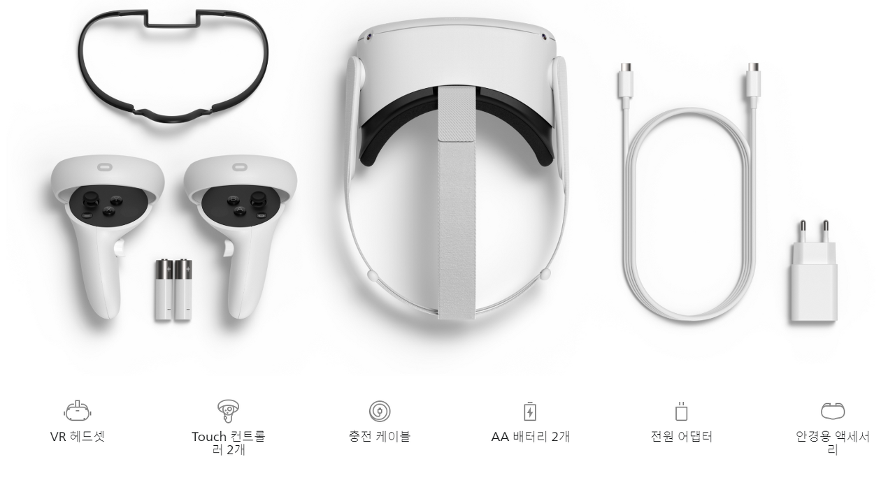 오큘러스 퀘스트2 구성품은 아래와 같습니다.