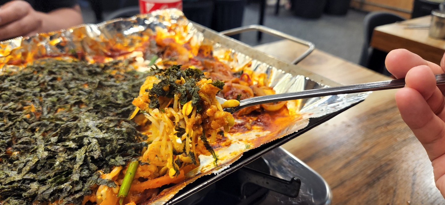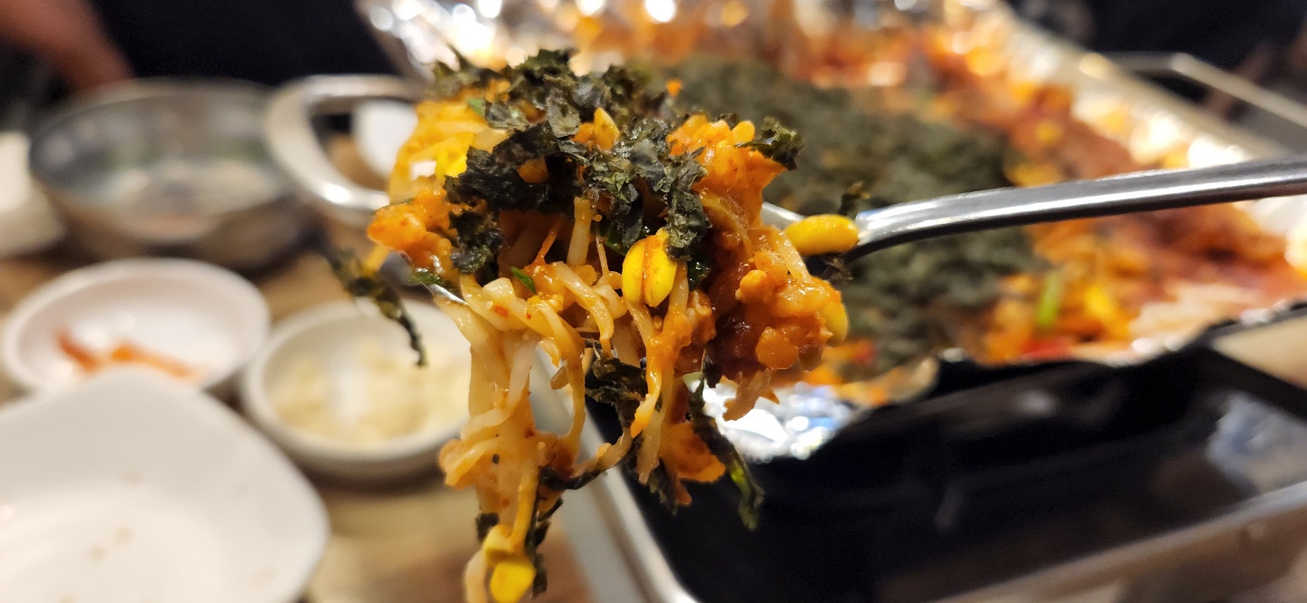 다 먹고 난 자리에는 이렇게 밥과 콩나물 김가루를 묻혀 만든 볶음밥을 주신답니다.