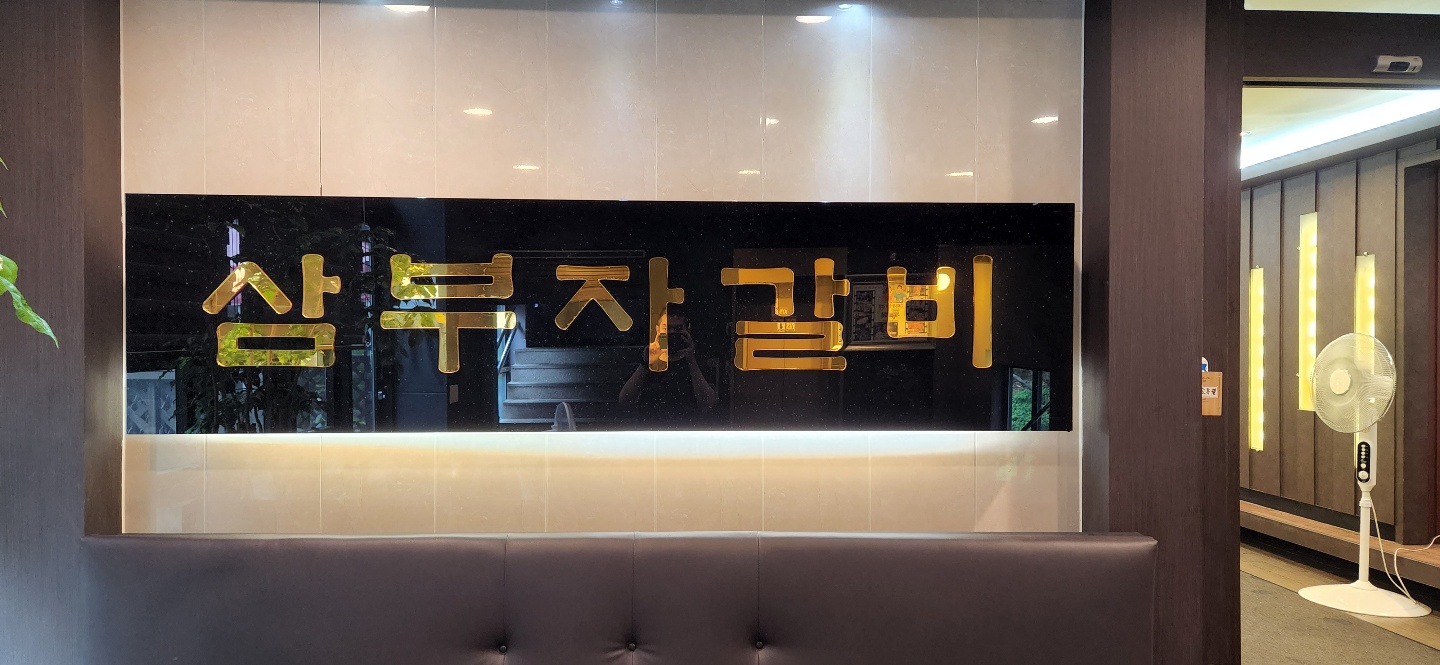 그리고 2층으로 올라가면 보이는 삼부자 갈비 간판입니다.
