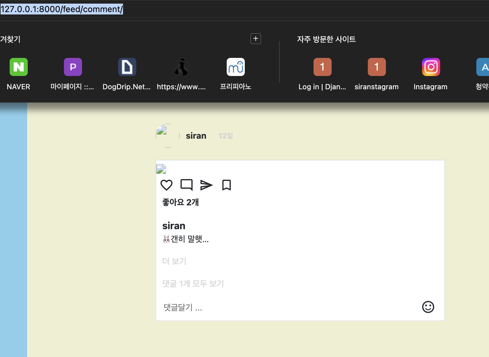 form을 통해 데이터를 서버쪽으로 전송 한 후 주소는 /feed/ 에서 /feed/comment/로 변하게 되겠죠?