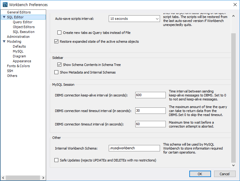 Edit -> preferece 에서 safe updates 항목을 체크해제 해준다.