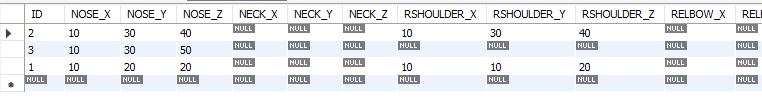 일단 insert into test_db(ID,NOSE_X,NOSE_Y,NOSE_Z) values (3,10,30,50);